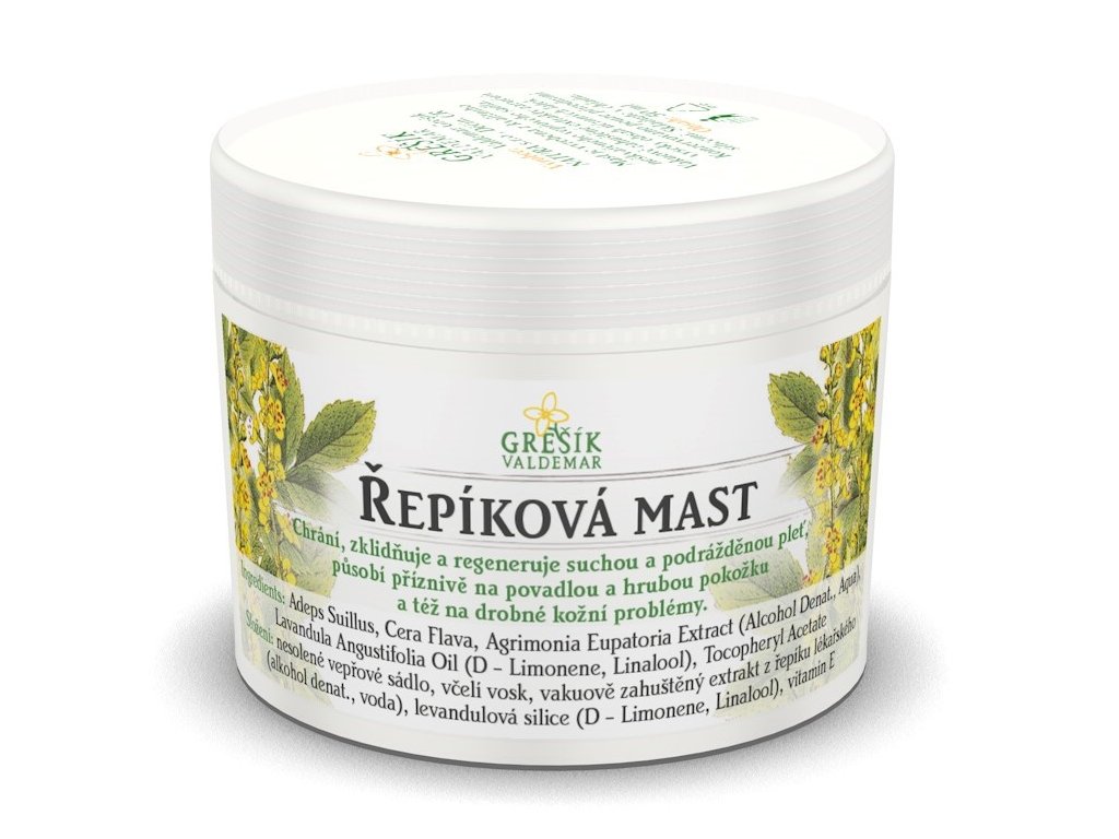 Složení: nesolené vepřové sádlo, včelí vosk, vakuově zahuštěný extrakt z řepíku lékařského (alkohol denat., voda), levandulová silice (D - Limonene, Linalool), vitamín E