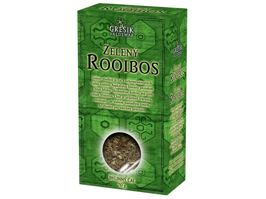 Zelený rooibos je čaj z nefermentovaných lístků rostliny Asphalatus linearis původem z Jižní Afriky. Neobsahuje kofein, má nižší obsah tříslovin. Chuť je příjemně travnatá, osvěžující, se slabým nasládlým tónem. Čaj je vhodný pro všechny generace.