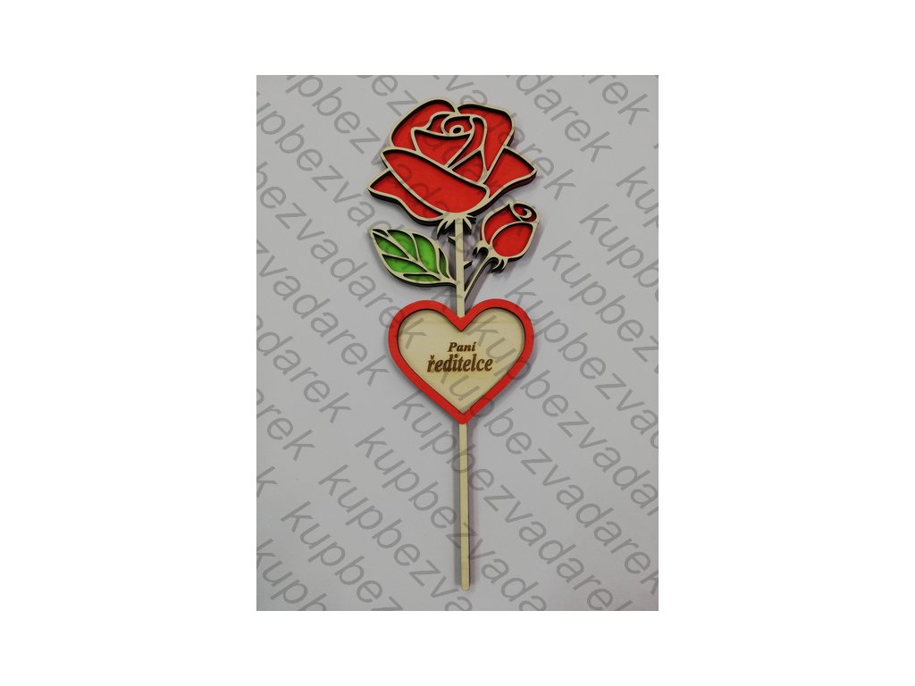 Dřevěná růžička s věnováním - Paní ředitelce - červená