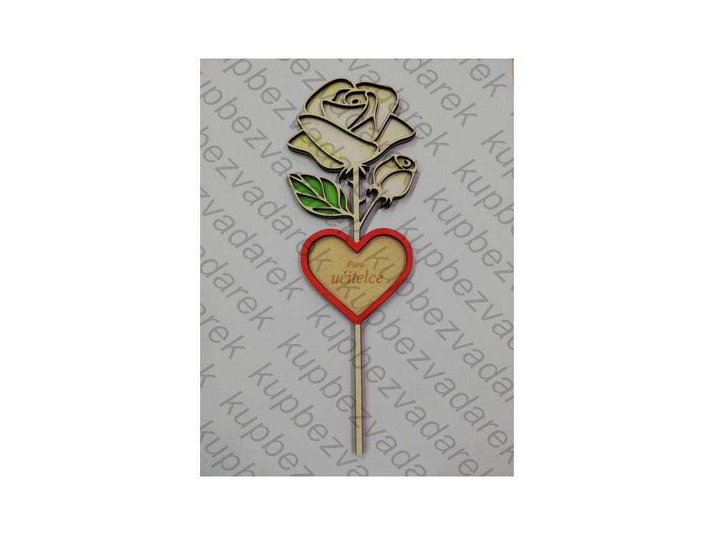 Dřevěná růžička s věnováním - Paní učitelce - bílá se žlutým