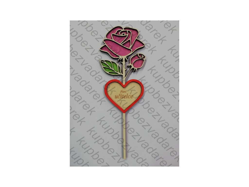 Dřevěná růžička s věnováním - Paní učitelce - růžová