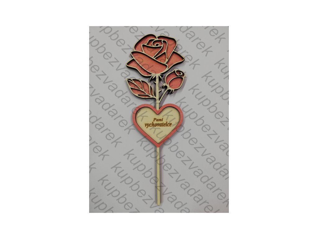 Dřevěná růžička s věnováním - Paní vychovatelce - růžová metalická
