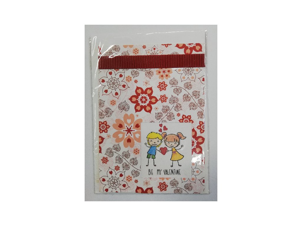 Přání - 10,5 x 15 cm - k Valentýnu - bílá s červenými květy