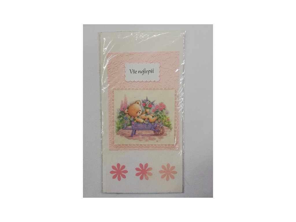 Přání - 21 x 10,5 cm - Vše nejlepší - bílá s růžovou