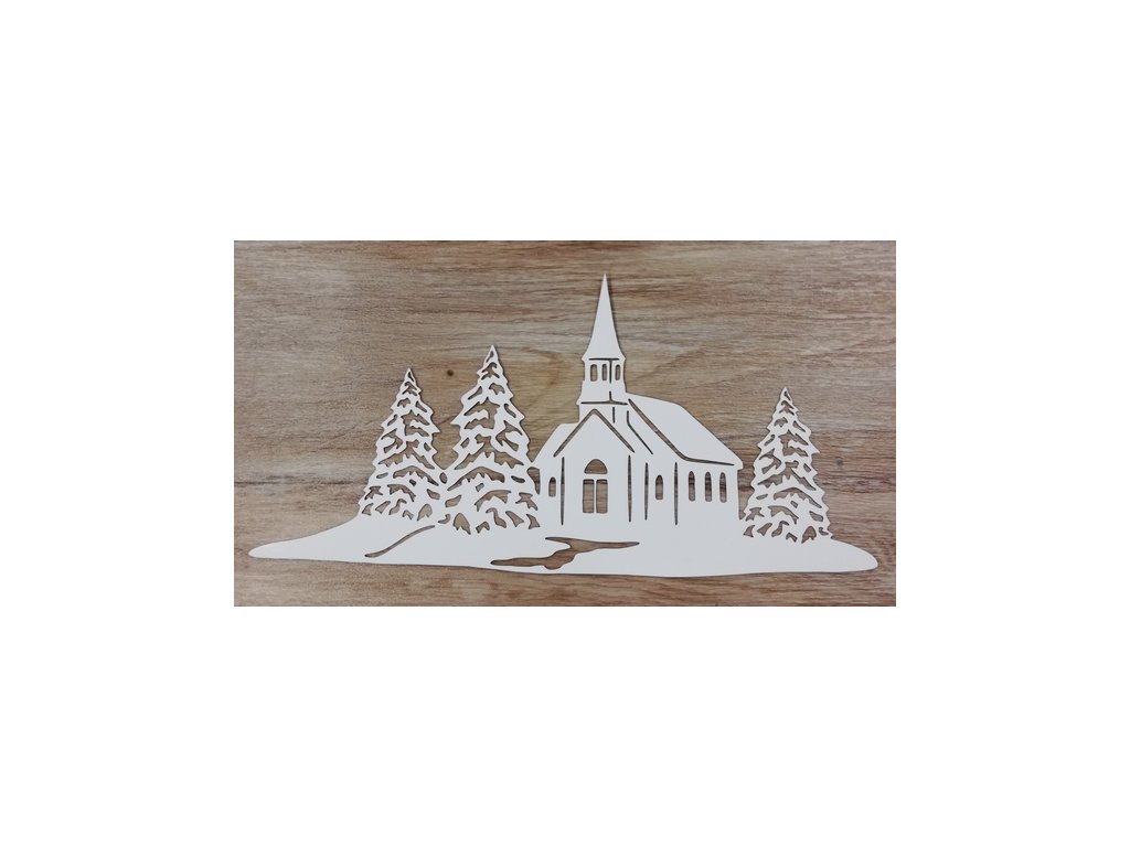 Bílý výřez na okno - kostelík - 15x30cm