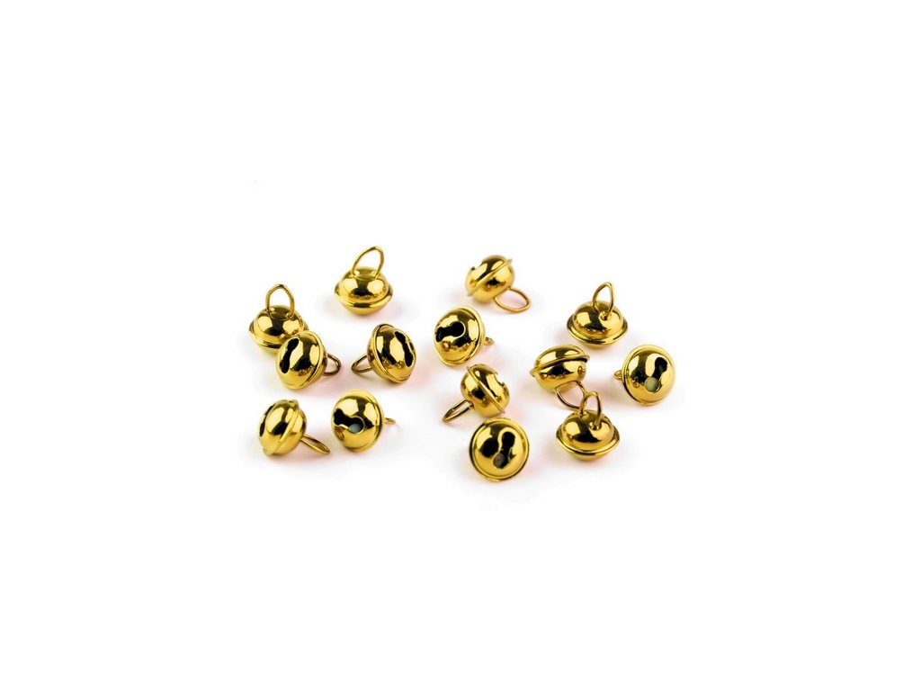 Dekorace kovová - zlatá rolnička průměr 6 mm s očkem na pověšení