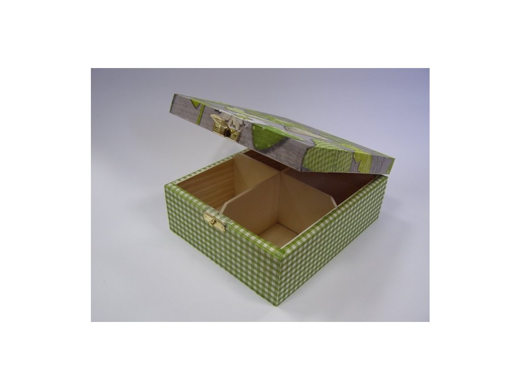 Dřevěná krabička - 4 přihrádky - Srdce zelené