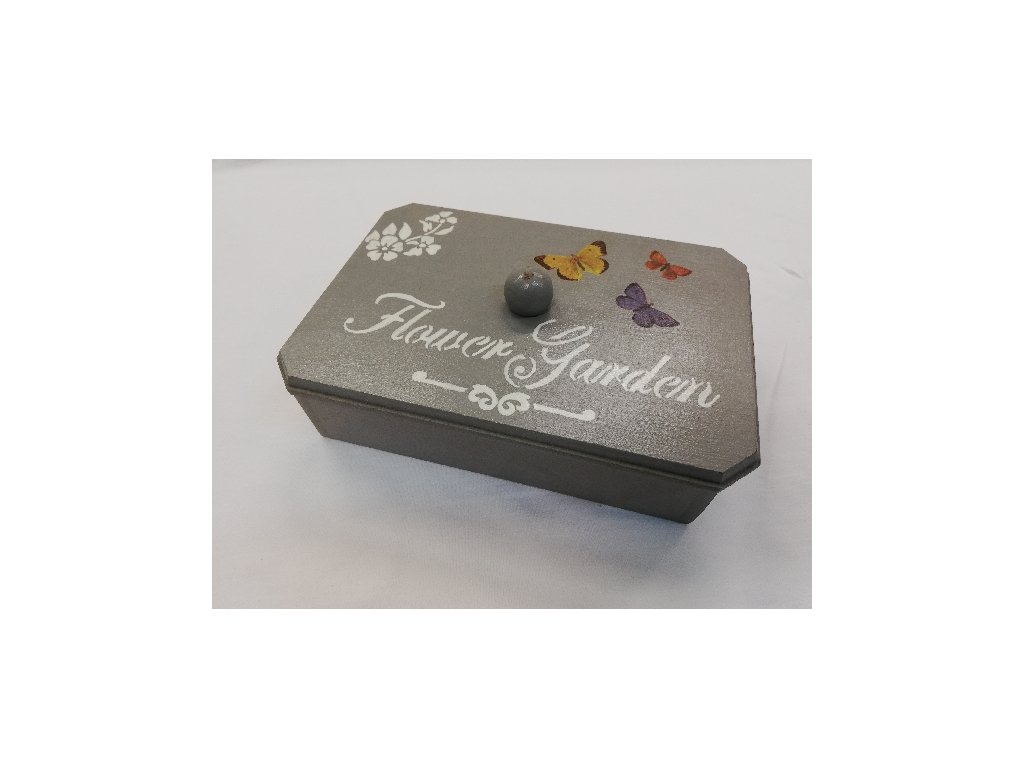 Dřevěná krabička s víkem 21 x 9 cm - zahrada na šedé