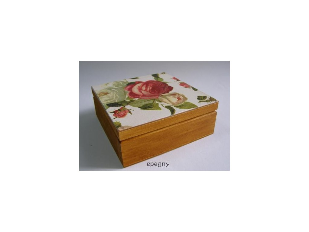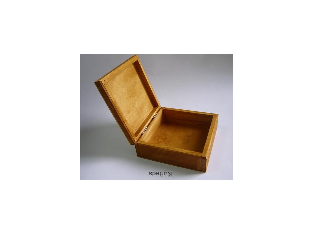 Dřevěná krabička bez zapínání, víčko na panty.