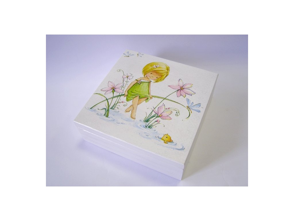 Dřevěná krabička s víkem 16 x 16 cm - Víla