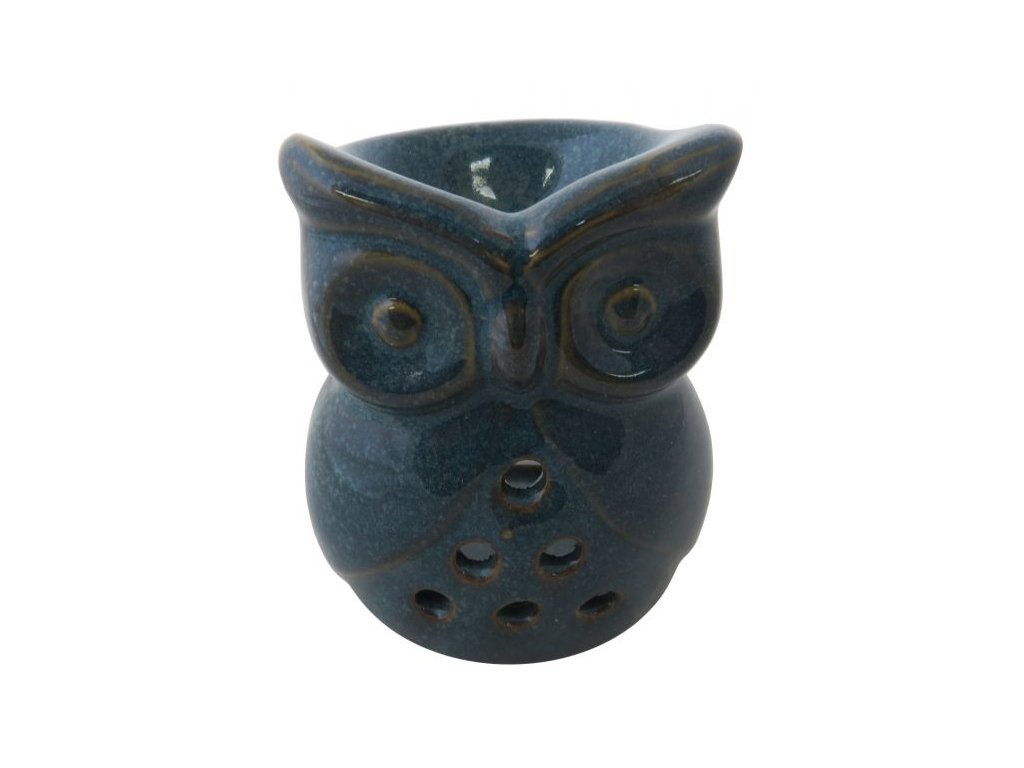 Keramická aromalampa zdobená - sova modrá - výška 10 cm