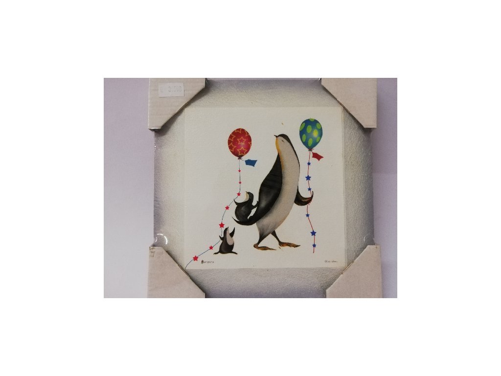 Obraz na desce - 22 x 22 cm - Tučňák s balonky