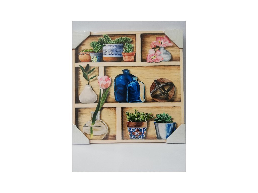 Obraz na desce - 30 x 30 cm - Květinová police