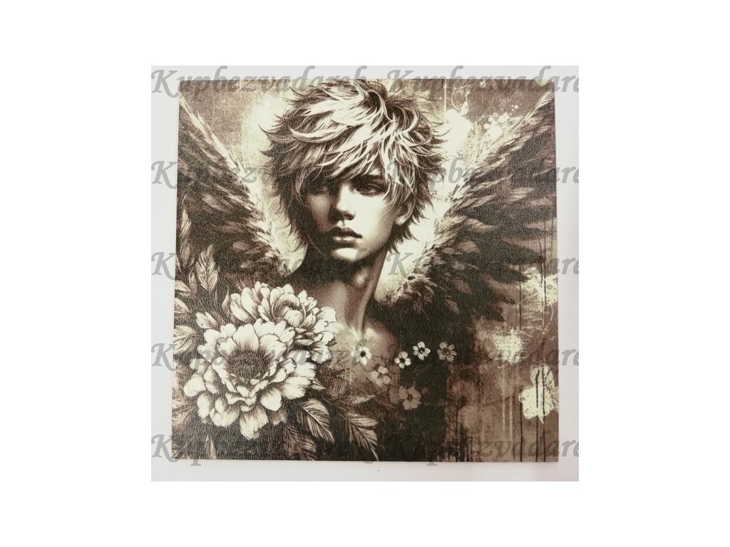 Obrázek na destičce - Anděl černobílý č.1 - 15 x 15 cm