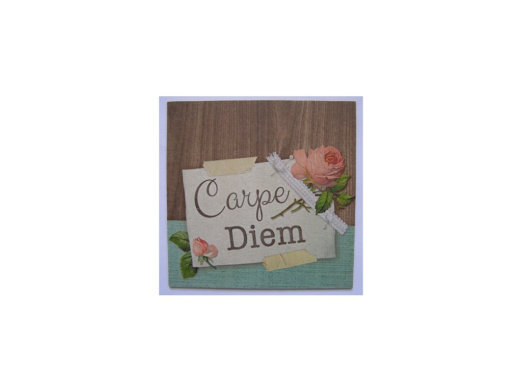 Obrázek na destičce - Carpe diem s růží - 16 x 16 cm