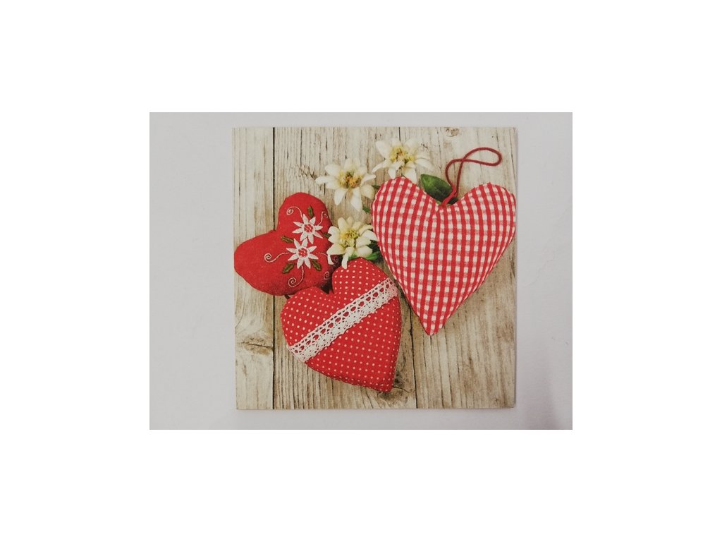 Obrázek na destičce - Červená srdce - 16 x 16 cm