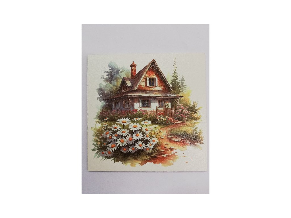Obrázek na destičce - chata u jezera č.4 - 15 x 15 cm
