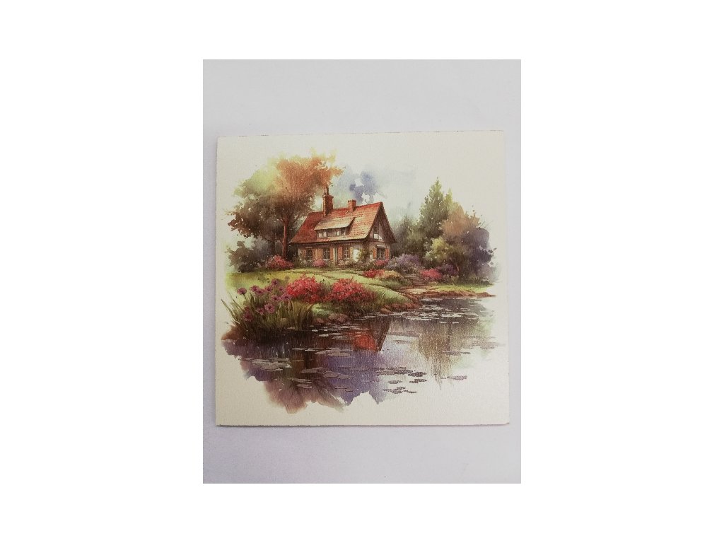Obrázek na destičce - chata u jezera č.7 - 15 x 15 cm