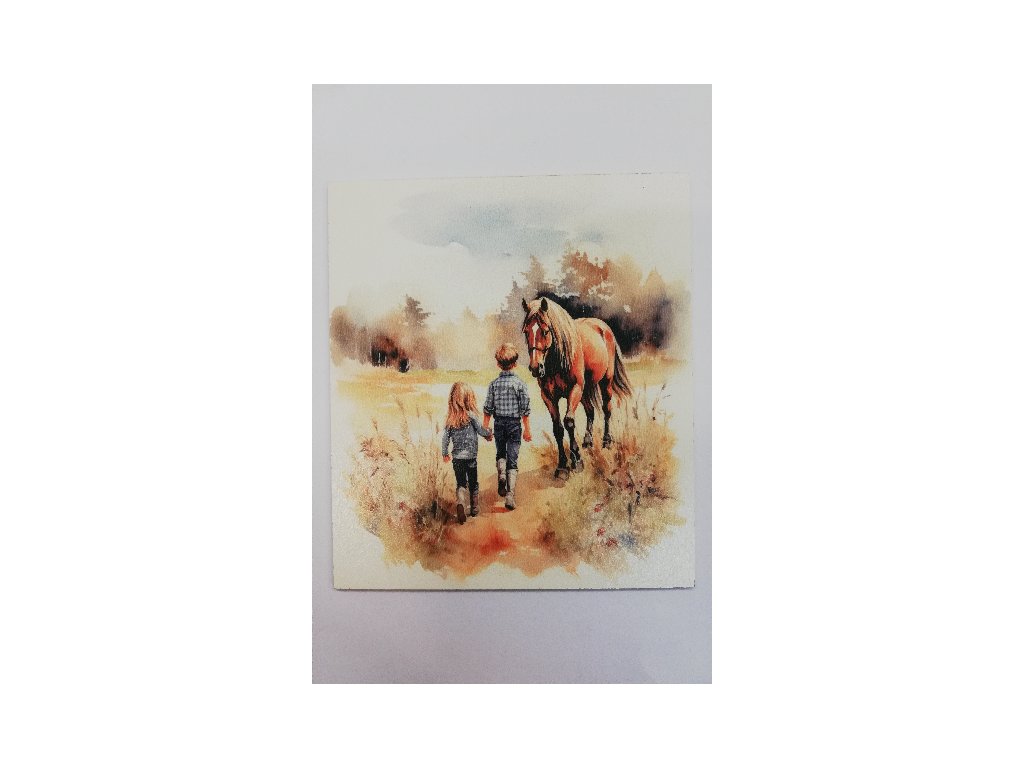 Obrázek na destičce - Děti s koněm č.2 - 20 x 20 cm
