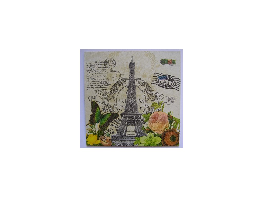 Obrázek na destičce - Eiffelovka a růže - 16 x 16 cm