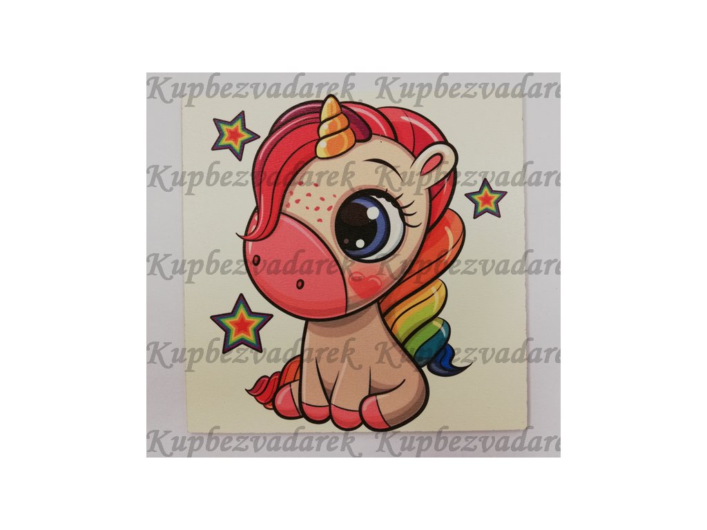 Obrázek na destičce - Jednorožec - 15 x 15 cm
