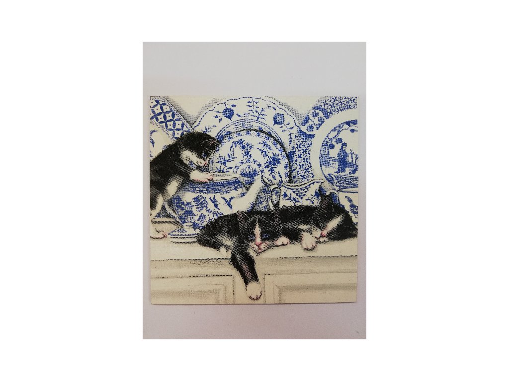 Obrázek na destičce - Kočičky s cibulákem - 16 x 16 cm