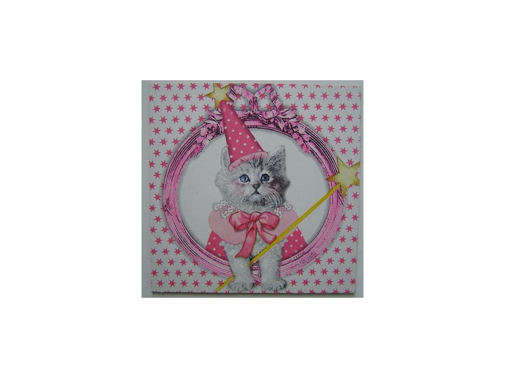 Obrázek na destičce - Kočka kouzelnice - 16 x 16 cm