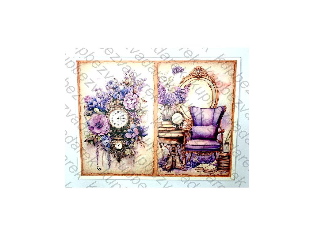 Obrázek na destičce - Křeslo a hodiny - 26 x 20 cm