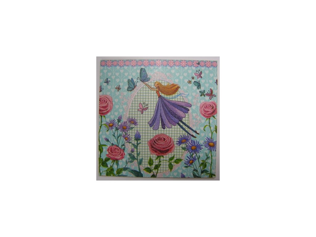 Obrázek na destičce - Květinová víla modrá - 15 x 15 cm