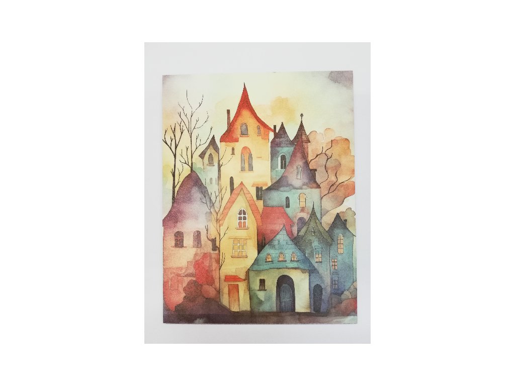 Obrázek na destičce - Městečko - 26 x 20 cm