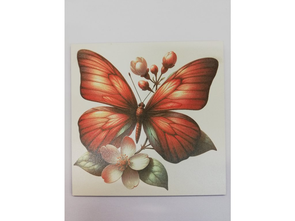 Obrázek na destičce - Motýl na květinách č.6 - 15 x 15 cm