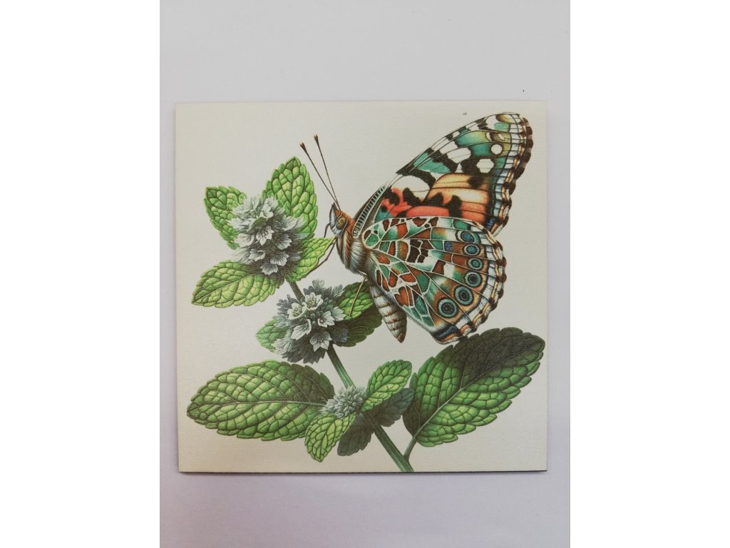 Obrázek na destičce - Motýl na květinách č.7 - 15 x 15 cm