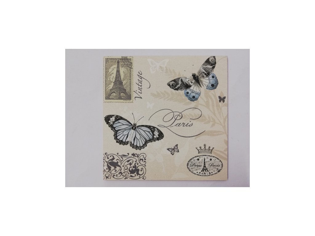 Obrázek na destičce - Motýli Paříž - 16 x 16 cm
