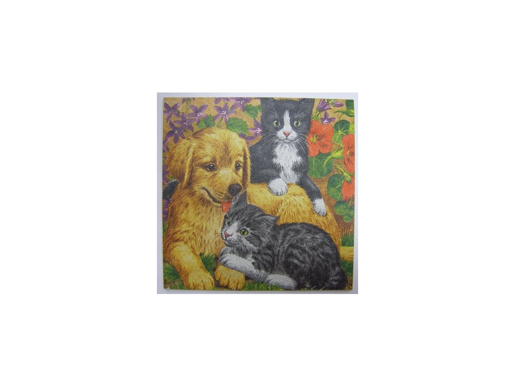 Obrázek na destičce - Pejsek a koťátko - 15 x 15 cm