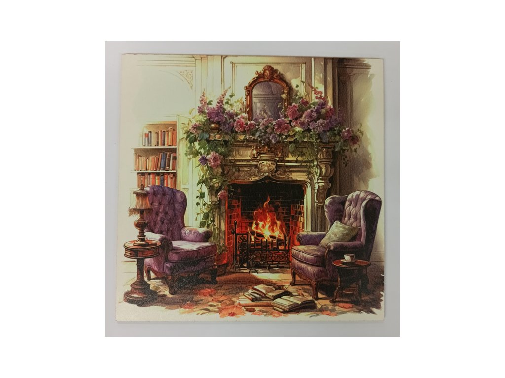 Obrázek na destičce - Posezení u krbu2