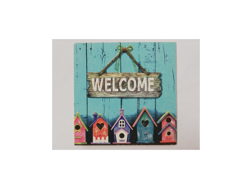 Obrázek na destičce - Welcome na modré - 16 x 16 cm