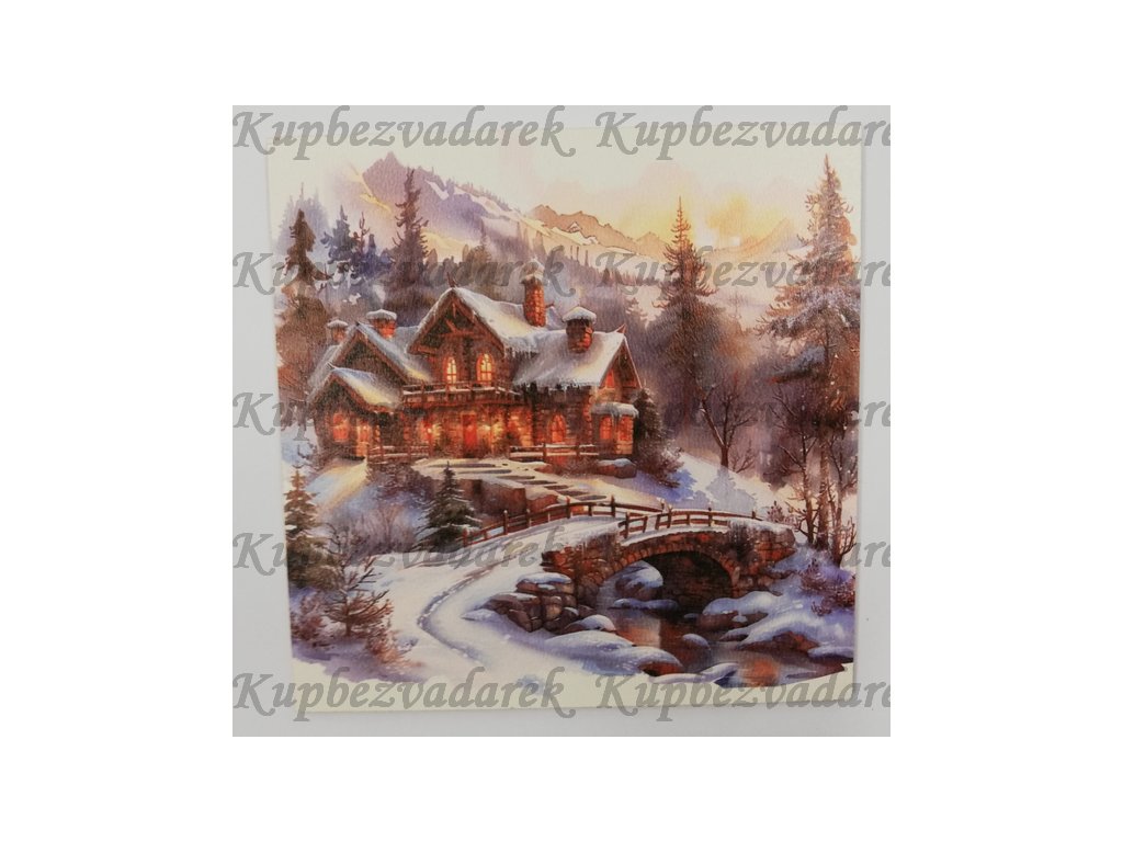Obrázek na destičce - Zimní krajinka s chatou č.1 - 15 x 15 cm