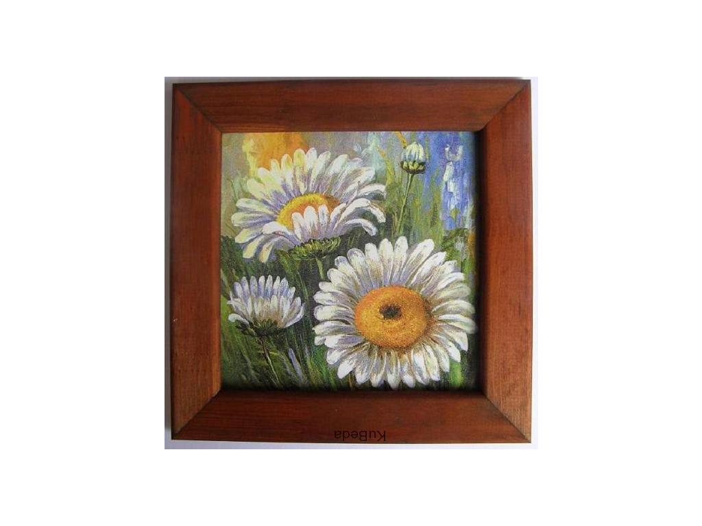 Obrázek v rámečku mořený - Kopretiny - 16 x 16 cm