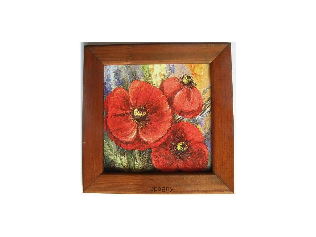 Obrázek v rámečku mořený - Vlčí mák - 16 x 16 cm