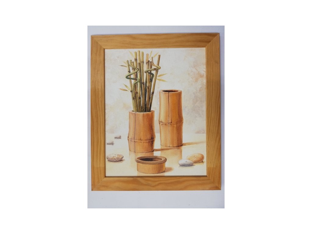 Obrázek v rámečku přírodní - Bambus ve váze - 25 x 20 cm