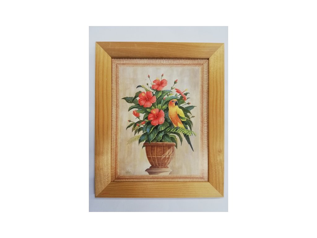 Obrázek v rámečku přírodní - Papoušek - 25 x 20 cm