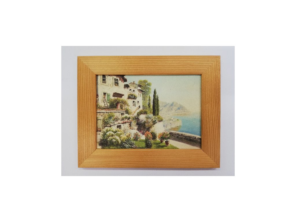 Obrázek v rámečku přírodní - Zahrada s výhledem na moře - 13 x 18 cm