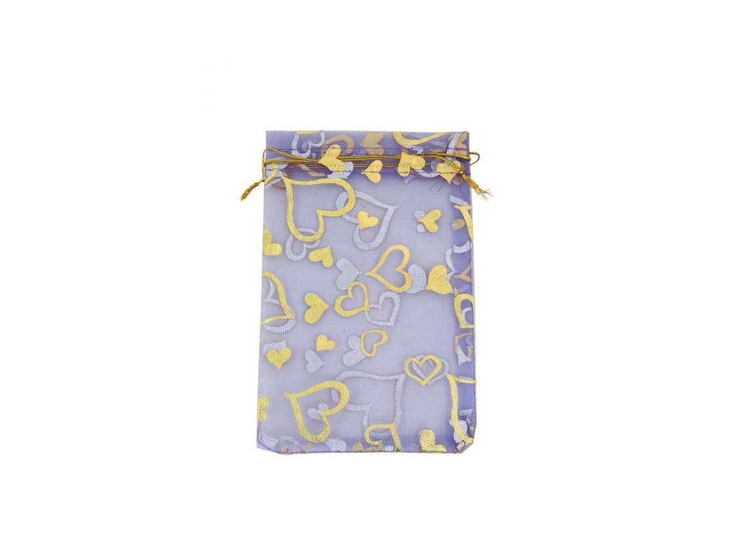 Organzový sáček - 11 x 16 cm - srdíčka fialový