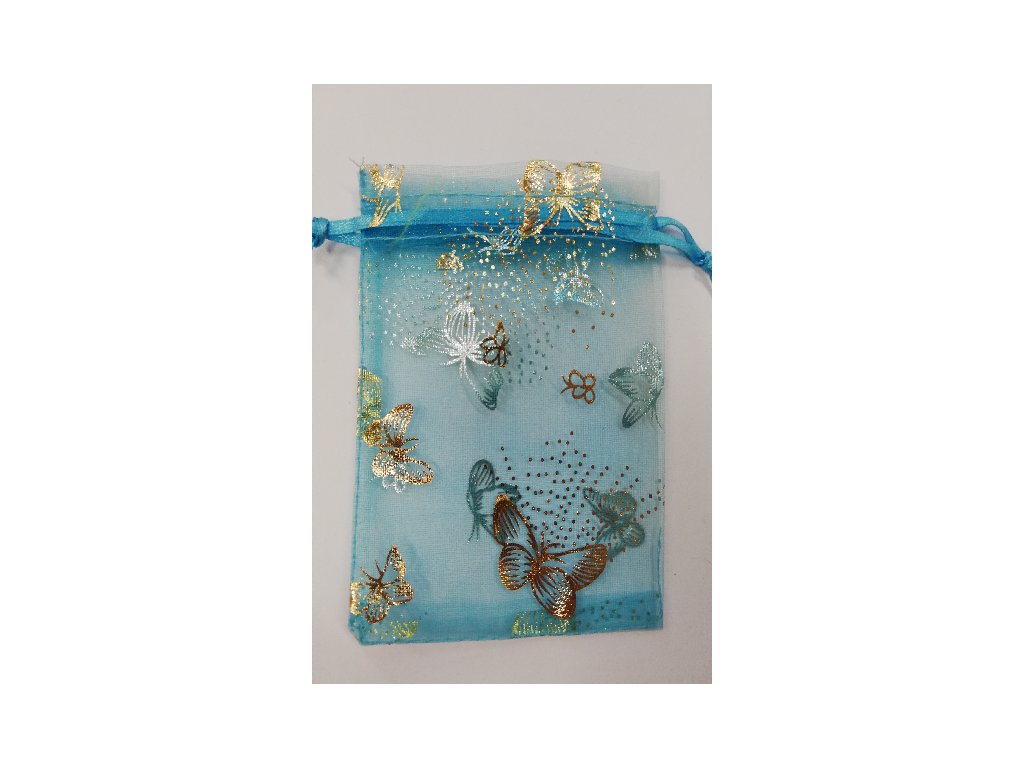 Organzový sáček - 12 x 9 cm - motýlci tyrkysové