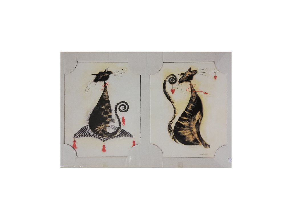 Sada 2x obraz na desce - 24 x 30 cm - Kočky