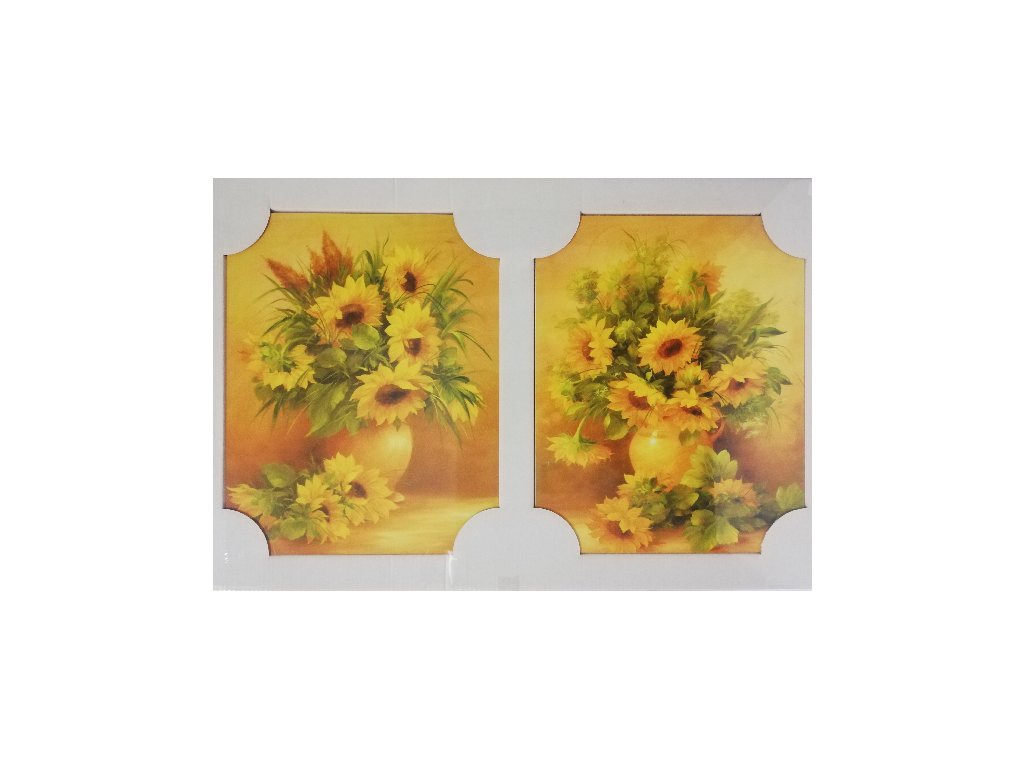 Sada 2x obraz na desce - 24 x 30 cm - Slunečnice ve váze