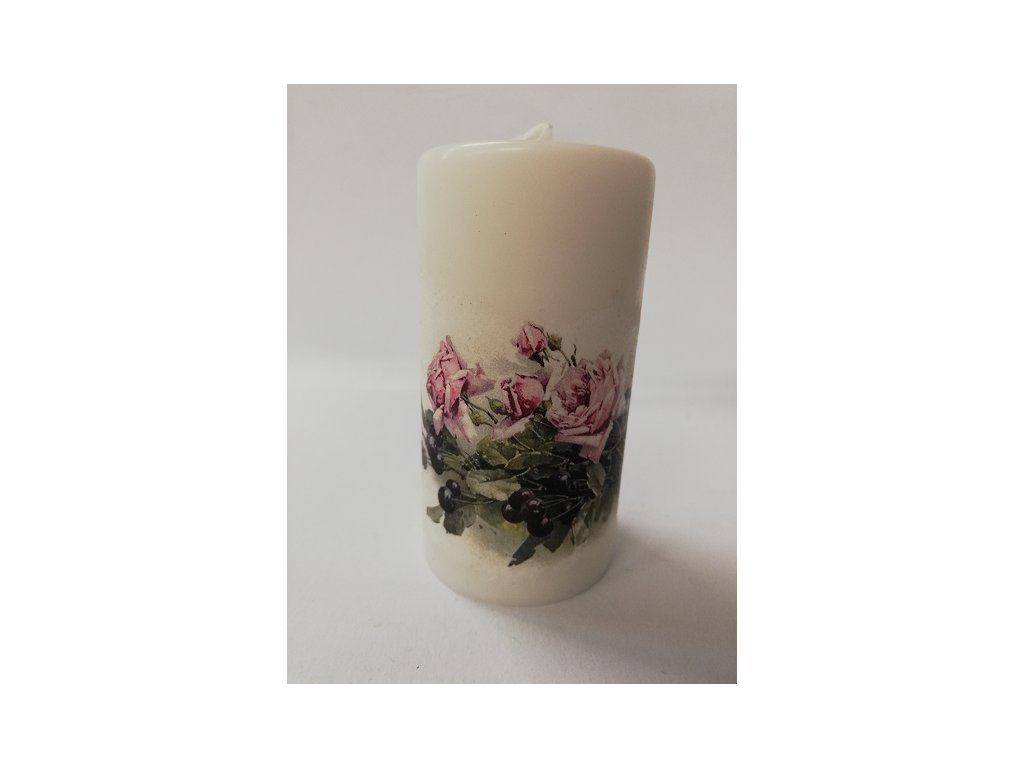 Svíčka z parafínového vosku zdobená - válec 9,5 cm - Růžičky