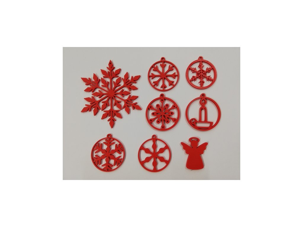 Vánoční ozdoby sada - výtisk 3D - 8ks - červená