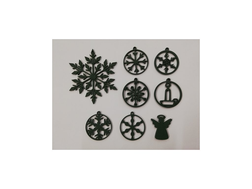 Vánoční ozdoby sada - výtisk 3D - 8ks - zelená