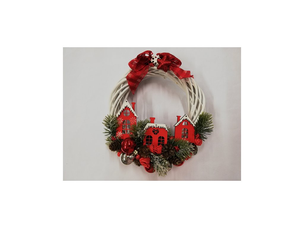 Vánoční věnec - 25cm - červené domečky a ozdoby